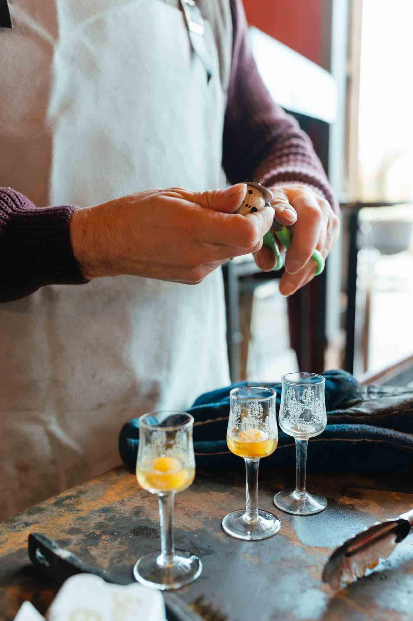 Bruno: Mēs sākām tirgoties Kalnciema tirdziņā ar svaigām paipalu olām pirms septiņiem gadiem, un tad jau izveidojās tāds kā pastāvīgo klientu loks. Bet mēs novērojām, ka tirdziņā sāka apgrozīties ļoti daudz tūristu, kuriem mūsu produkts šķita sevišķi interesants, viņi bieži fotografējās ar mūsu olām. Taču līdzi uz mājām lidmašīnā šādu mantu īsti nepaņemsi. Somi, piemēram, stāstīja, ka pie viņiem šīs olas maksā četras reizes dārgāk. Sākām domāt, ko mēs varētu piedāvāt tieši tūristiem, un atradām informāciju ar ķīniešu streetfood. Viņi uz ielas cep paipalu olas un piecas rindiņā samauc uz iesmiņa. To sākām darīt arī mēs, nosaucot par “Čempionu brokastīm”. Vecāki bija priecīgi, ka bērniem beidzot kaut kas patīk, izņemot čipsus, un pie mums sāka nākt ģimenes un vēl joprojām nāk. Tad strādājām pie idejām tālāk. Atkarībā no sezonas parādījās paipalu buljons. Mans biznesa partneris Roberts Inapsis sabija Dienvidkorejā vairākus gadus, strādājot starptautiskā uzņēmumā, un viņš no turienes atveda ideju par paipalu olām sojas mērcē, kas tur ir klasiska recepte, un tā jau piecus gadus piedāvājam šādu produktu. Protams, sākumā bija jāpavada kāds laiciņš cilvēkus ar šo lietu iepazīstinot, jo Latvijai tas bija eksotisks produkts. Bet nu jau šis gardums atrodams diezgan daudzu veikalu plauktos, un var teikt, ka tas ir mūsu top produkts – Rimi klētīs, Sky veikalos, labs mūsu klients ir Jānis Sauka ar saviem veikaliem, tāpat esam Āgenskalna un Kalnciema tirdziņos. Aptuveni gadu piedāvājam produktu, kas saucas “Šerpa”. Olu marinādes sastāvā ir vīnogu etiķis un halapenjo pipariņš.