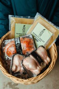Bruno: Ak jā, mums ir produkts, kas domāts kalnā kāpējiem, – kaltēta paipalu fileja, kas pieejama mazos maisiņos pa 45 gramiem ar trīs paipalu filejām. Tās ir sagrieztas smalkās strēmelēs un sakaltētas, un šajā produktā ir 82 %olbaltumvielu. Nesen uzzinājām, ka šīs filejas vecāki dod uz skolu saviem bērniem.