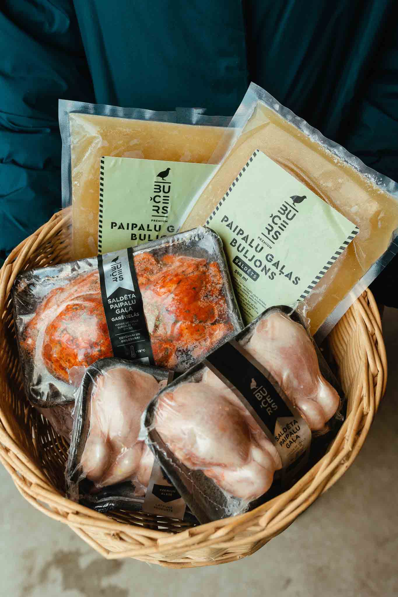 Baiba: Lepojamies ar mūsu olu pārstrādājamo iepakojumu, par kuru esam ieguvuši dizaina balvu – piedāvājam 18 un 6 olu kastītes. Gatavojam arī savu majonēzi. Tā kā pati daudzus gadus esmu darbojusies restorānu nozarē un esmu cepusi kūkas, mani interesēja, ko varētu piedāvāt desertu sadaļā. Tad radās bezē cepumi un mūsu dievišķais Crème brûlée, par kuru ir lieliskas klientu atsauksmes, tāpēc tiešām atļaujamies to saukt par “dievišķo”. To atzinīgi ir novērtējis pat pats Mārtiņš Rītiņš, kurš pie mums taisīja vienu no saviem raidījumiem. Svētkos gatavojam olu liķierīti, bet tas vairāk savam priekam un veikalos nav atrodams. Tāpat mēs cenšamies izmantot čaumalas, lai nekas no vērtīgā neietu zudumā, samaļam pulverī un pārdodam tiem, kuri vēlas, jo tur ir daudz labu vielu. Kalnciema tirdziņā mēdzam piedāvāt sāļos krēmus, kas nav veikalu plauktos, bet radīti tieši tai dienai. Principā cenšamies izmantot visu paipalu no A līdz Z, izņemot spalvas un iekšas. Sākām piedāvāt paipalu stilbiņus, kas guva lielu klientu atsaucību un jau kļuvusi par īstu delikatesi. Mēs gaļu ne tikai piedāvājam svaigā veidā, bet arī saldējam un marinējam. Vārdu sakot, meklējam dažādus veidus, kā piedāvāt cilvēkiem interesantas un garšīgas lietas. Ko nepieminējām – gaļas produkti un delikateses mums iet ar nosaukuma “Bučers”.