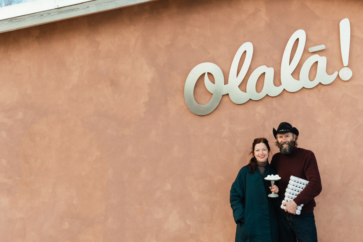 Baiba: Mums vispār patīk spēlēties ar vārdiem nosaukumos. Šerpa, piemēram, ir labi zināms vārds alpīnistiem, un mūsu produkts ir tāds, kas iedod spēku un enerģiju uzkāpt tajā kalnā. Kas attiecas uz mūsu nosaukumu Olalā!, kuru izdomāja Roberts, arī te redzam vārdu spēli. Ar šo nosaukumu jau esam daudz kur pazīstami, un ir bijuši kuriozi, kad cilvēki, ieraugot paipalu olas, jau automātiski domā, ka tie ir mūsu produkti, kaut gan nav vis. Paipalu olas tiek automātiski asociētas ar mums. Tagad pamazām veidojam Olalā! raksturu un zīmolu kā tādu. Pie mums saimniecībā jau ir bijis otrais Olalā! streetfood pasākums, kurā notiek paipalu grilēšana kopā ar kartupelīšiem, un nu jau tādu lietu piedāvājam katru svētdienu.