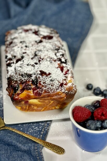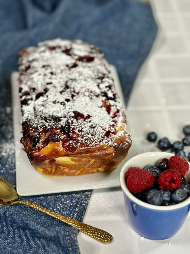 Sajauc bļodā jogurtu, cukuru, cieti, olas, vaniļu un sāli. Visu kārtīgi samaisa. Tad iemaisa ogas.