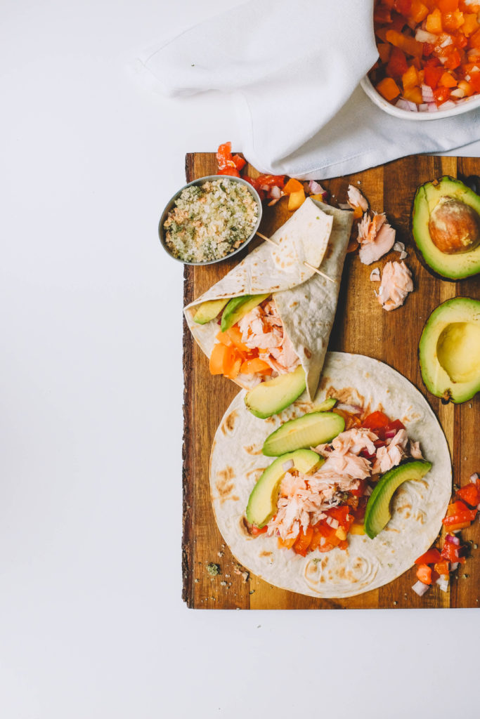 Tortilja ir lielisks izgudrojums, kā sakombinēt kopā porcijā lietas, kas viena otru papildina un rada brīnišķīgas jaunas garšu kombinācijas. Jūs nekad neēstu lasi ar tomātiem un nebērtu tam virsū sarkanos sīpolus, bet šādi – satītu kopā sainītī, tas ir iespējams. Te viens piemērs kā vienkāršu, krāsnī ceptu laša fileju atklāt no jauna.