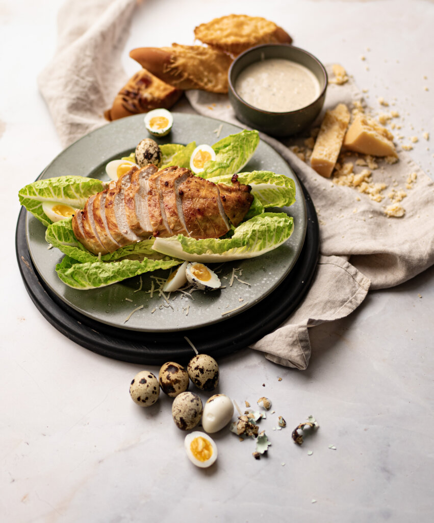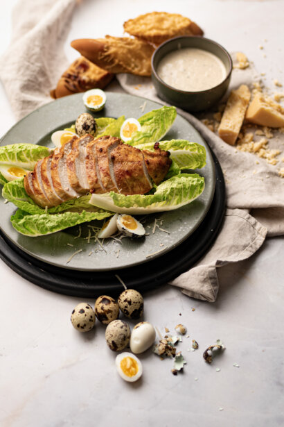 CĒZARA SALĀTI AR VISTAS FILEJU UN TRIFEĻU MĒRCI