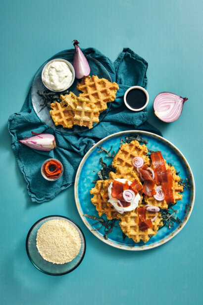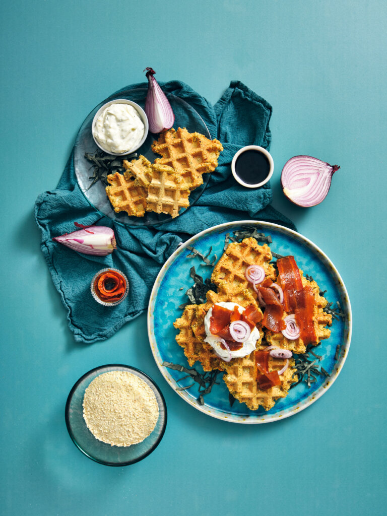 7. Vafeles pasniedz ar krēmsiera krēmu un burkānlasi.