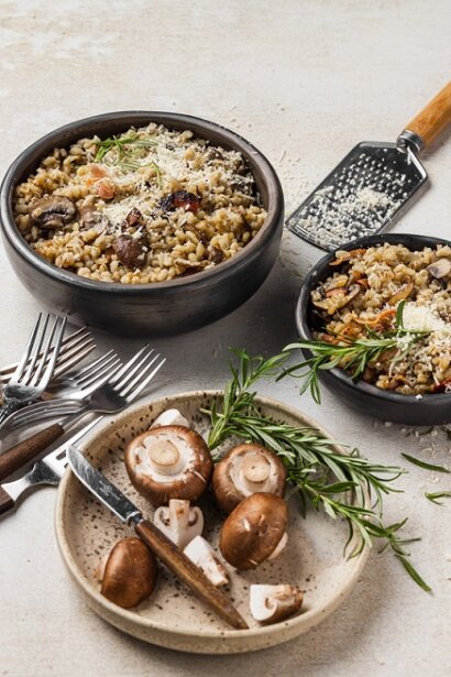 2. Sautē zem vāka, ik pa laikam apmaisot, aptuveni 40 minūtes, līdz grūbas ir mīkstas un uzsūkušas visu buljonu. Ja šķiet par sausu, pievieno vēl buljonu.