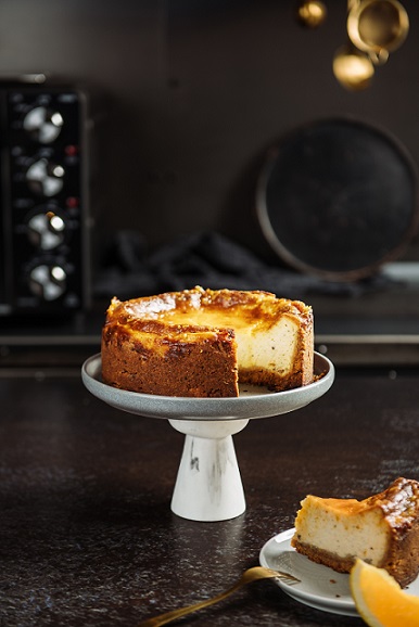 2. Visas kūkas masas sastāvdaļas, izņemot apelsīnu sulu, bļodā savieno un pārlej cepumu pamatnei.