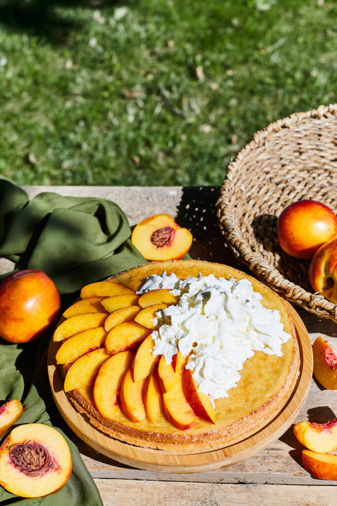 Karsēta piena biskvītkūka ar putukrējumu un augļiem