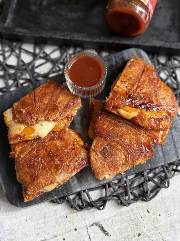 Noņemot no pannas, uz apceptās puses vienam kruasānam liek sieru un kimči mērci, bet otram – medu. Saliek abas puses kopā, veidojot sendviču. Liek sendvičus atpakaļ uz pannas un apcep no abām pusēm, līdz siers izkusis un garoziņa kraukšķīga. Papildu kraukšķīgumam ārējās maliņas var viegli apsmērēt ar medu.
