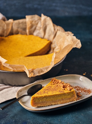 4. Biezpienu, olas, ķirbju biezeni, saldinātāju, kukurūzas cieti un garšvielas liek virtuves kombainā un sablendē līdz viendabīgai masai.
