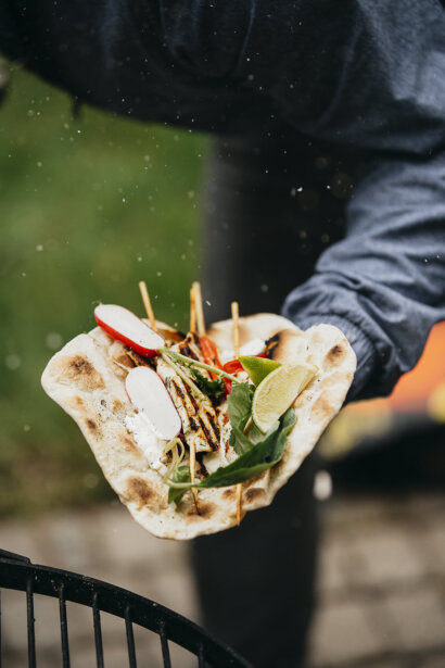 Pagatavo mīklu. Sajauc miltus ar ūdeni un kārtīgi izmīca, tad atpūtina 30 minūtes. Pēc tam izrullē apaļus mīklas plāceņus aptuveni 20–30 cm/dm un cep uz pannas.