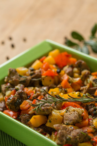 Kad gaļa sautējusies 40 minūtes, tai pievieno dārzeņus, apmaisa. Katla virspusē saliek smaržīgo piparu graudus, sakapātus svaigus pētersīļus un lauru lapas. Atstāj sautēties ~ 20 minūtes, kamēr dārzeņi mīksti. 5 minūtes pirms sautēšanās beigām sautējumam virsū uzliek rozmarīna zariņus, un atstāj zem vāka garšām savilkties vismaz 5–10 minūtes.
