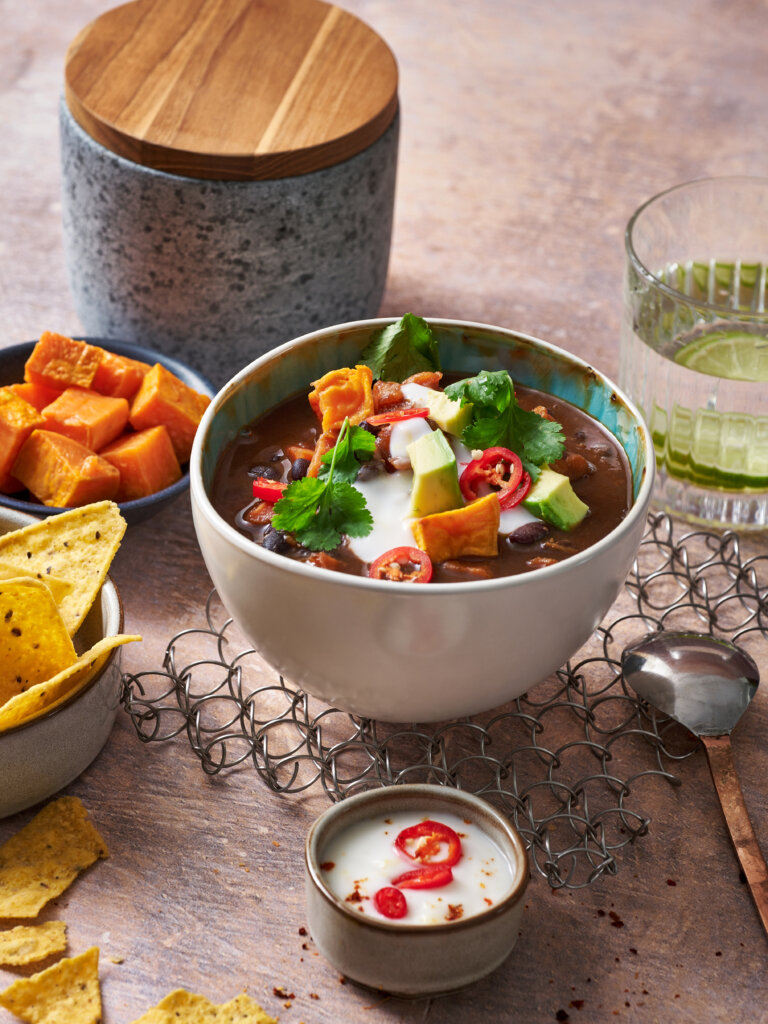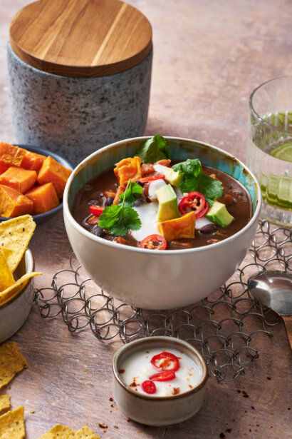 8. Zupu lej bļodiņās, pāri liek dažas karotes citronu jogurta, kubiņos sagrieztu avokado, pārkaisa ar kinzu un pasniedz kopā ar pannā uzsildītiem kukurūzas čipsiem.