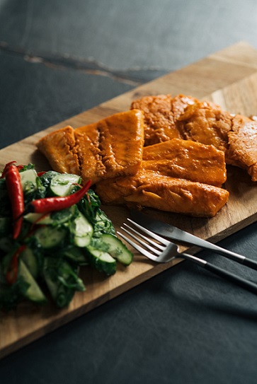 Mencas fileja sarkanā karija un apelsīnu marinādē