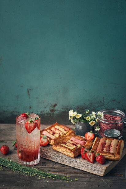 Liek krāsnī vēl uz 10–15 minūtēm, līdz kārtainā mīkla ir zeltaini brūna un rabarberi mīksti.