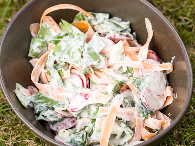 Šo recepti uzgāju kādā angļu interneta vietnē, izmēģināju, un redīsam atklājās pavisam citas garšas nianses. Salāti ir sātīgi, tādēļ lieti noderēs vakariņās vai pat pusdienās.