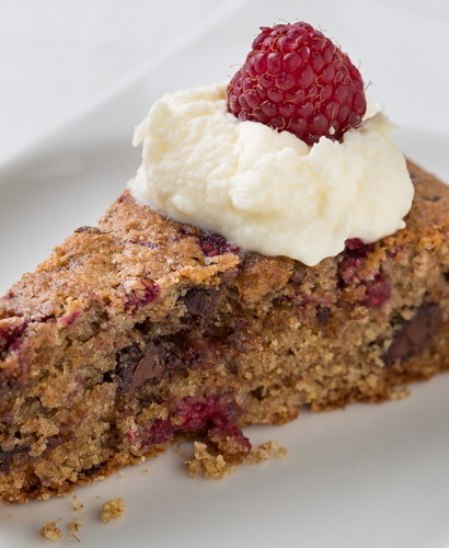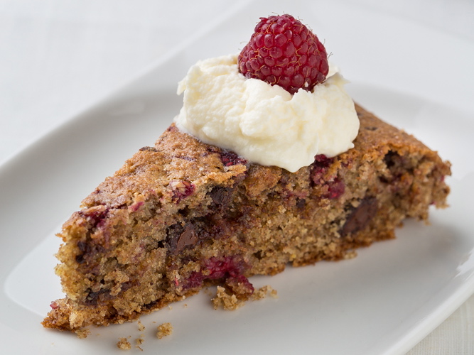 Šokolādi salauž mazos gabaliņos un pievieno mīklai. Tāpat pievieno sausas aveņu ogas. Visu samaisa kopā.