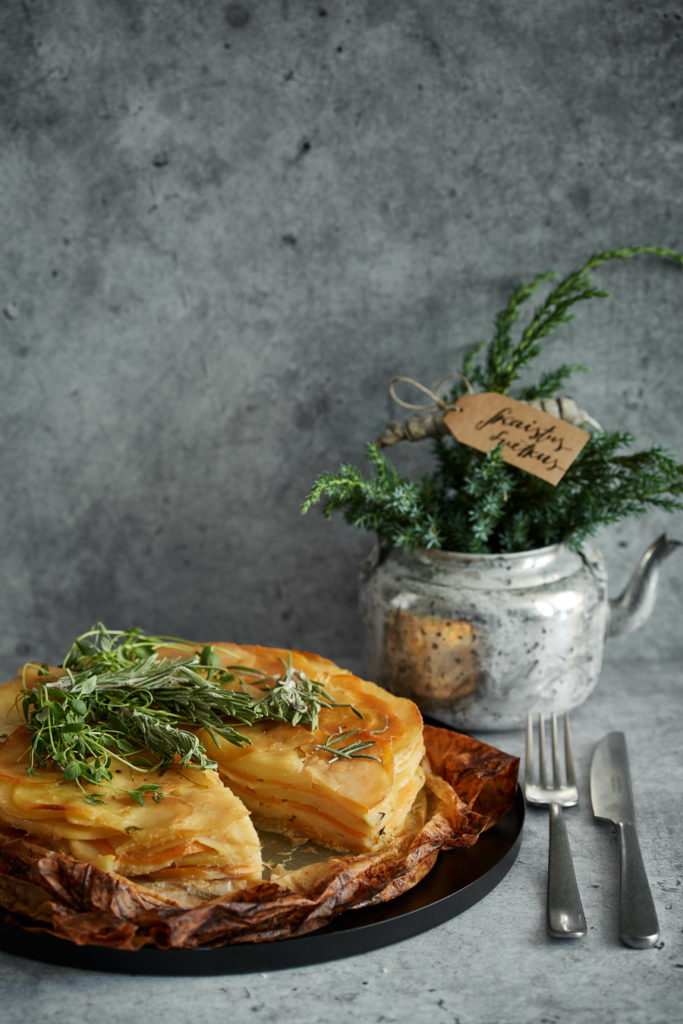 Kad gratēns ir gatavs, to atkal kārtīgi nospiež un atstāj uz 20 minūtēm, lai dārzeņu kārtojums kļūtu blīvāks un dārzeņi labāk turētos kopā.