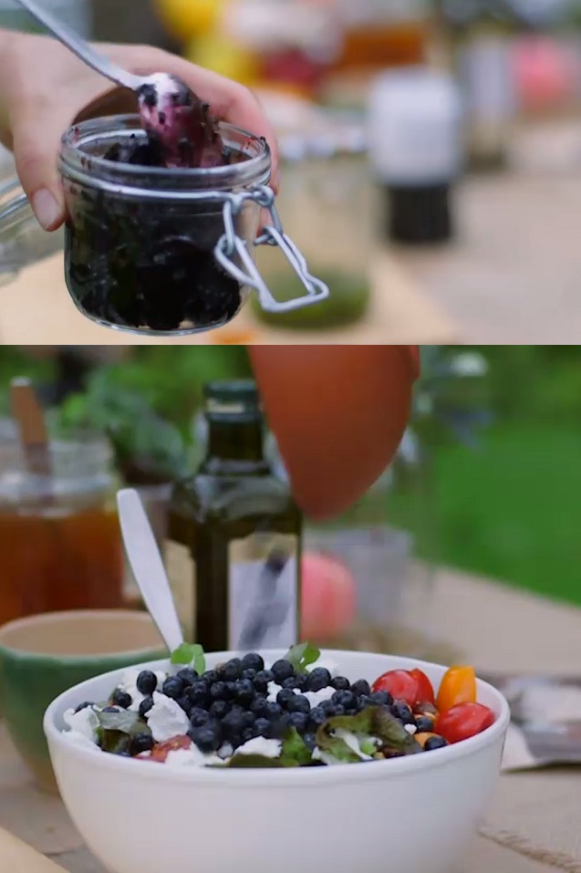 Salāti ar mellenēm un kazas sieru, un melleņu kečups