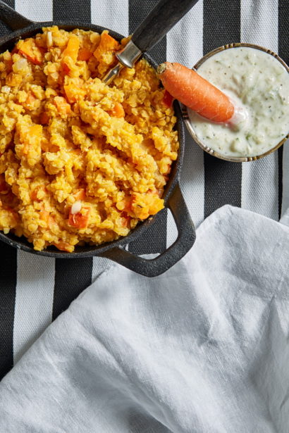 Ļoti viegli un ātri pagatavojams ēdiens, kas labi garšos gan viens pats, gan kombinācijā ar jogurta mērci un/vai rīsiem. Lēcas atšķirībā no citiem pākšaugiem nav stundām jāmērcē, un tām ir nepieciešams īss gatavošanas laiks. Īsāku laiku lēcas pavārot, tās nezaudēs tekstūru un būs mazliet kraukšķīgas, taču, ilgāk pavārot, tās pavisam izjūk un padara ēdienu maigi krēmīgu. Lēcas ir ļoti labs olbaltumvielu un dzelzs avots, kā arī tajās ir daudz šķiedrvielu, bet maz tauku. Kombinācijā ar dārzeņiem un garšvielām šis ir sildošs un ļoti veselīgs rudens ēdiens.