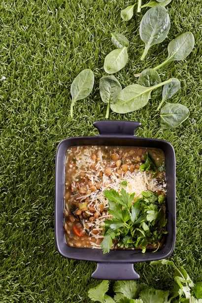 Šīs zupas iedvesma nāk no mīlīgās “Mū” kafejnīcas uz Tērbatas ielas. Šī vieta, manuprāt, ir latviešu dvēseles vienkāršības skaistuma ilustrācija. Viss ir maziņš, mīļš un vienkāršs. Tāpat arī šī zupa. Lēcas un spināti ir superveselīgas un vienkāršas pamatsastāvdaļas, bet viss pārējais – svarīgi sīkumi, lai līdzsvarotu visas garšas. Skābumam – tomāts, saldumam – kokosriekstu piens un cukurs, kreftīgumam – ķiploki un sīpoli, bet raksturam jeb aromātam – kumīns un zaļumi.