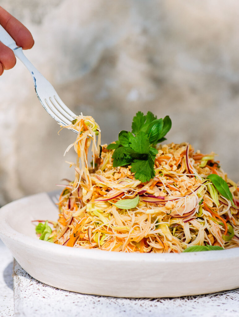 250 g stikla nūdeļu vai plāno rīsu nūdeļu