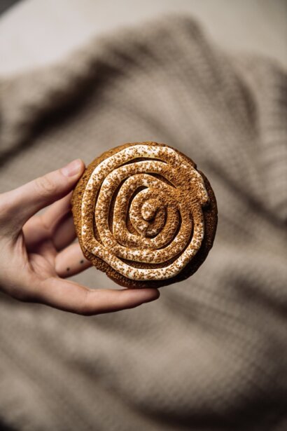 4. Gatavos cepumus dekorē ar krēmu un kakao.
