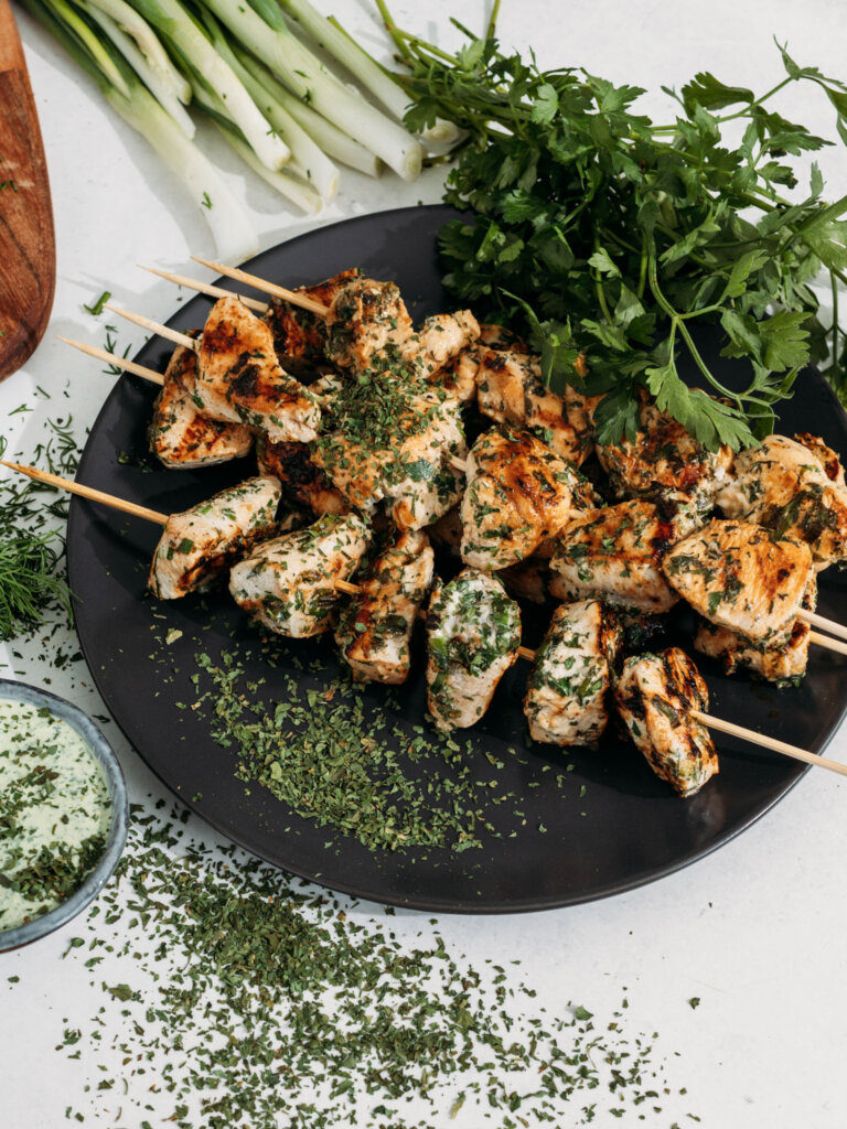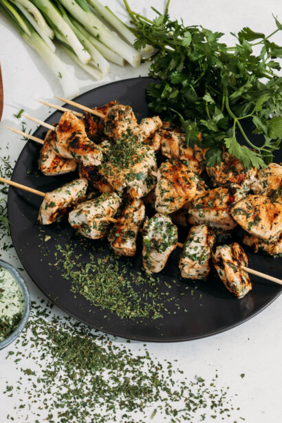 2. Gaļu dur uz iesmiņiem un cep uz grila aptuveni 20–30 minūtes, līdz tā viscaur izcepusies.